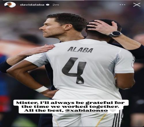 阿拉巴告别阿隆索:我会永远感激我们一起工作的时光,祝一切顺利