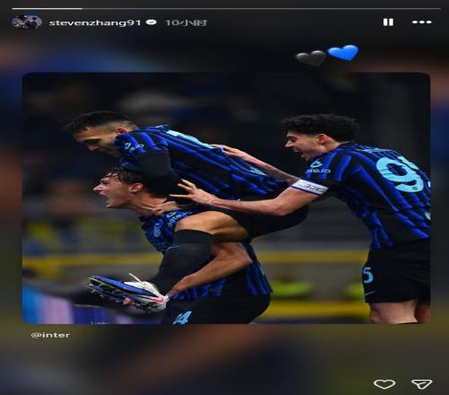 前国米主席张康阳发社媒,并配劳塔罗骑在埃斯波西托上庆祝的照片,配文❤️符号