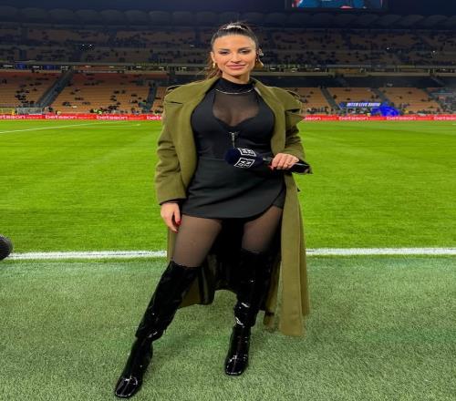 大饱眼福!里奇女友现场报道国米vs拿波里,卡里乌斯妻子线上主持