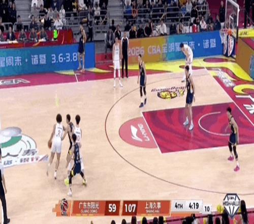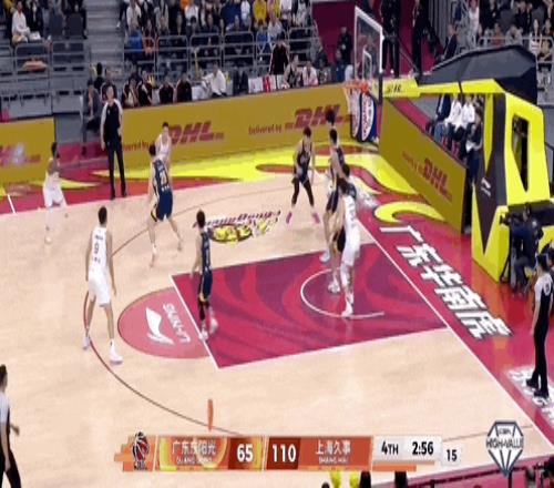 洛夫顿追身三分,分差达到50分。后面发生的事情,简单来说就是,上海队队员轮流进三分球......进完你的,进你的,进完你的,进你的......